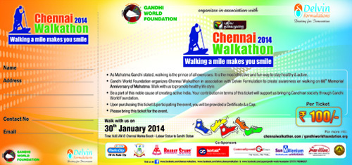 Collect tickets for our next event on 30th January 2014. Lets walk Chennai !!! For Tickets contact 9841 021069, 7299 021069